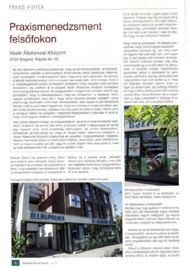 Partnerünk, a Vezér Állatorvosi Központ tevékenységét ismertetei aktuális számában a Kamarai Állatorvos című szakmai folyóirat a praxisokat bemutató rovatában. Büszkék vagyunk partenrünk sikereire!